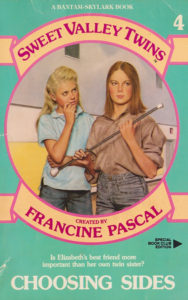 Wing recaps Sweet Valley Twins #4: Choosing Sides, wherein Amy wants to twirl a baton, Jessica doesn’t want her to, and Elizabeth feebly stands in the middle, wondering whose side to take.