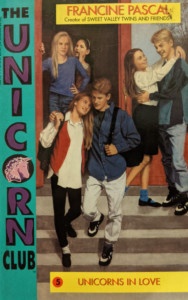 Evie does the look similar, act dissimilar thing for the twins, and it’s not terrible. Nothing new, though: Jessica’s smart but isn’t the best student, loves to watch music videos, sitcoms, and cheesy romantic movies, and doesn’t have a boyfriend — wait, what? I thought she and Aaron were still mostly a thing — though she goes on lots and lots of dates, a surprise considering she’s only thirteen. So we’ve had a birthday? Did I miss that? How out of it have I been lately? (No need to tell me, the answer is A LOT thanks to some bad bipolar brain for several months now.) [Dove: The twins’ birthdays are June 13, so we all missed it during summer holidays (I think… you guys break up early, don’t you?). So, no, you didn’t miss anything. They, like me, age up off screen between school years.] [Raven: I too was surprised at the lack of Aaron’s name here, but it’s inkeeping with the rest of the Unicorn Club series thus far. Todd Wilkins, for example, hadn’t even heard of Elizabeth when he mocked the Unicorn performance on Best Friends in the school cafeteria.]